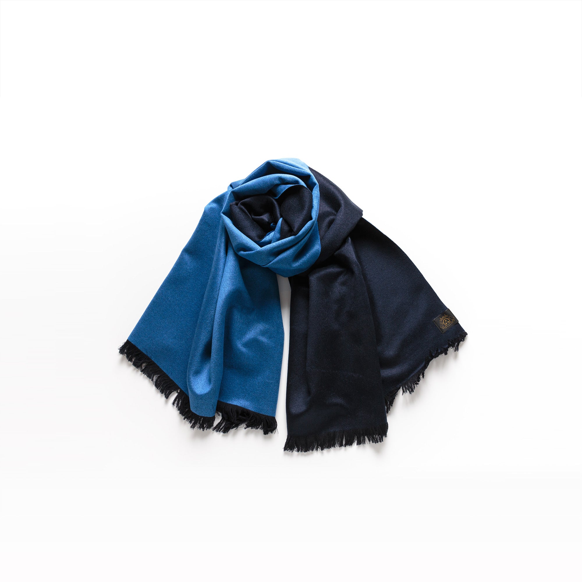 ダブルリッチシルクウールストールL(ネイビー×ブルー)