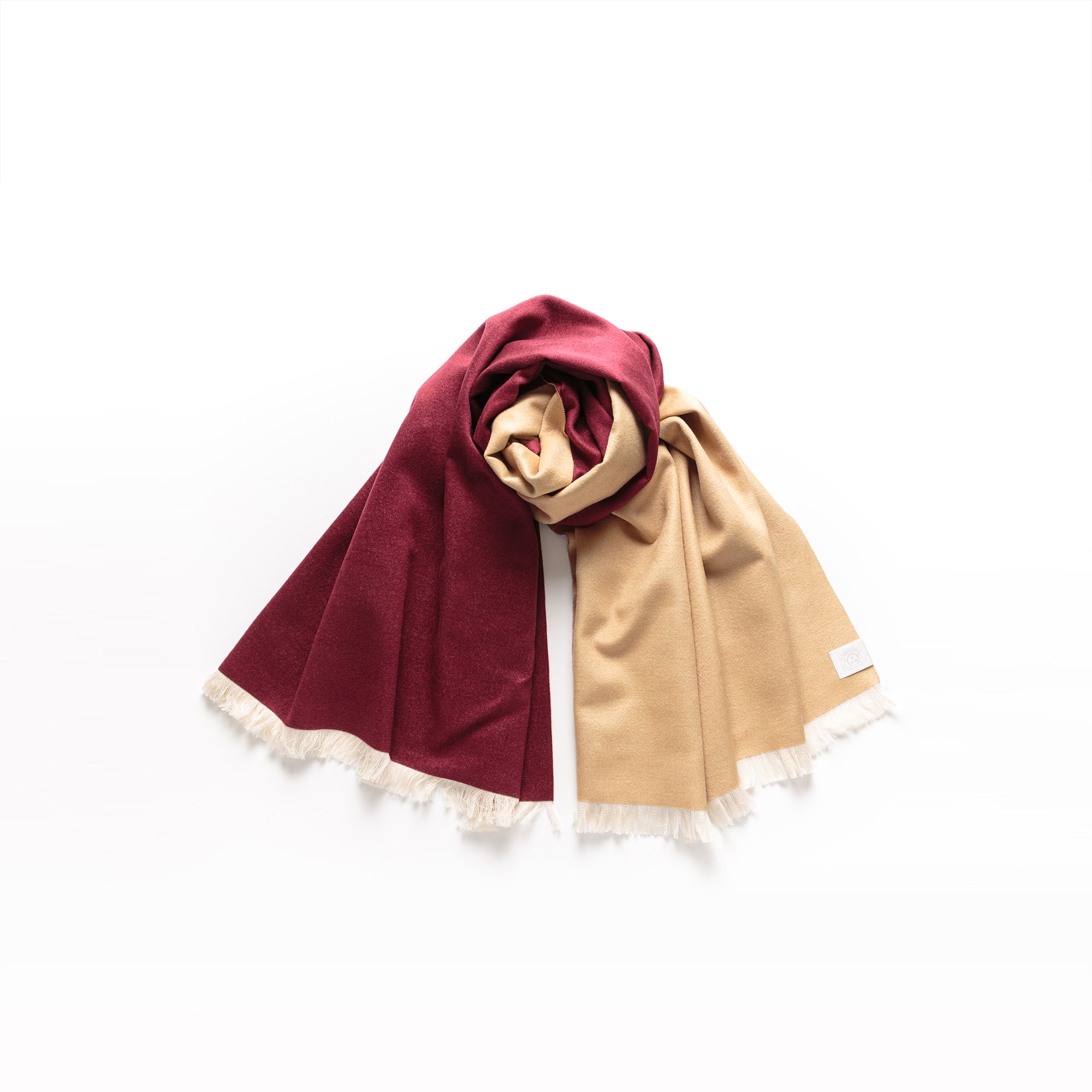 ダブルリッチシルクウールストールL(キャメル×ボルドー)